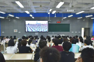 会议期间,王霞向同学们说明综合素质测评及奖助学金评定相关事宜,并告诫同学们少打游戏,少贪玩,多进图书馆,提升知识储备与综合素质。她还着重就考研、考公进行专题指导,为有意愿的同学提出具体建议与要求,助力他们明确发展方向。上午9时,法学院2023级全体同学集中观看阅兵仪式现场直播,共襄庄严热烈的氛围。