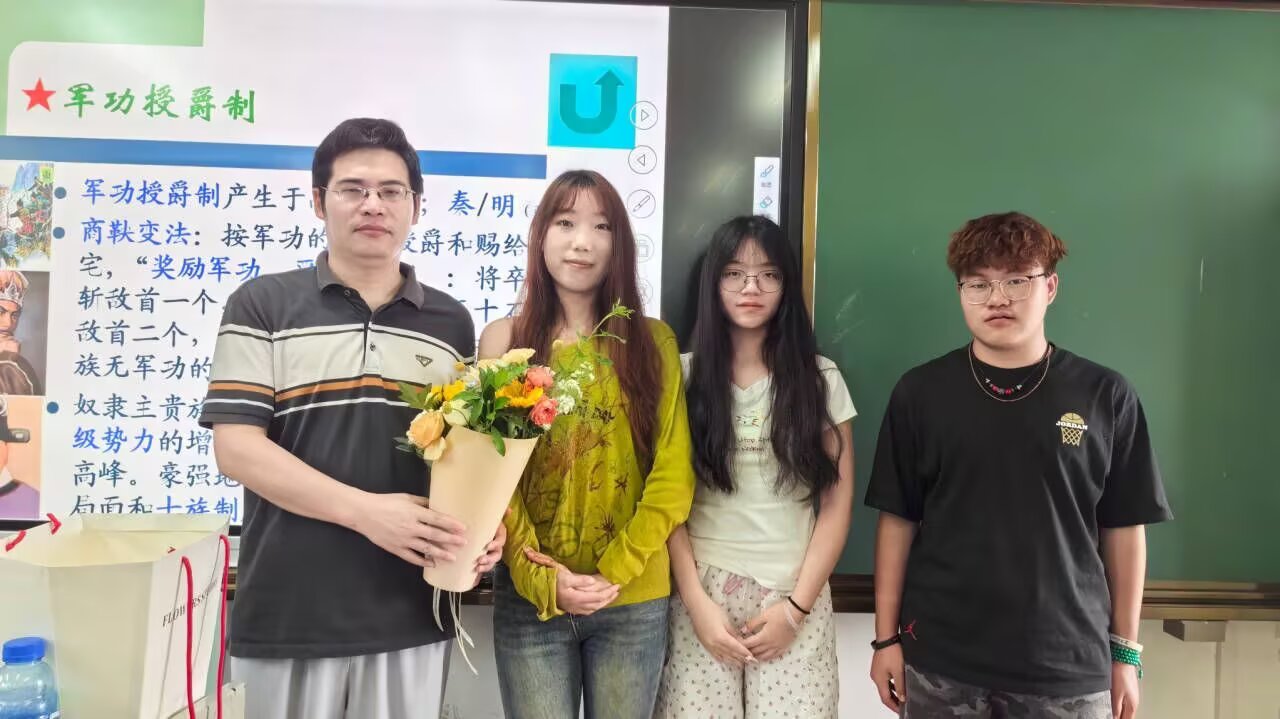 在充满敬意的氛围中,学生代表们提前抵达教室,于静候中手捧芬芳的花束,将对老师的感恩与祝福悄然凝聚。当老师的身影映入教室门扉,早已等候的学生代表们便微笑上前,郑重地献上鲜花,用最真挚的声音道出节日的问候与祝福。老师们接过这份满载心意的礼物,欣慰与喜悦的笑容在脸上缓缓绽放,瞬间,整个课堂被这份纯粹的师生情谊填满,温馨与感动在每一个人的心中流淌。