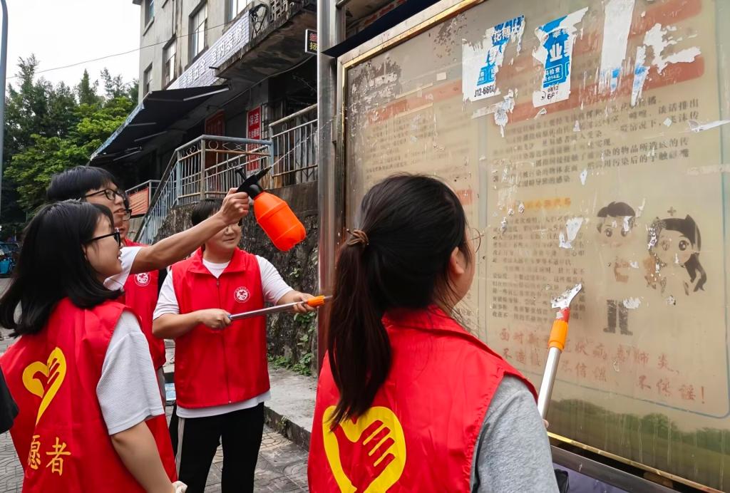 为营造整洁优美的社区环境,9月10日上午八点,2023级法学3班团支部联合南山社区共同开展“清癣净巷,家园焕新”志愿服务活动。在班级团支书苏扬的统筹协调下,志愿者们积极投身社区街道旧广告单清理工作,用实际行动为家园“美颜”。