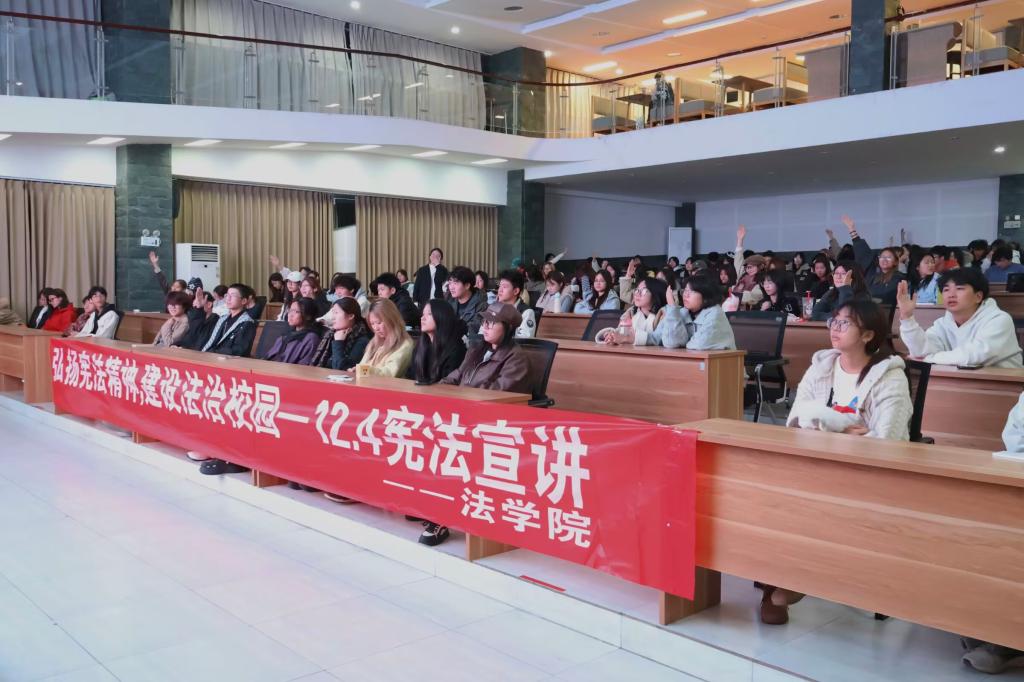 为弘扬宪法精神、培育法治素养,法学院宪法宣讲团于11月25日20:20在博雅厅开展“弘扬宪法精神,建设法治校园”主题宪法宣讲活动。本次活动由法学院学生科科长兼分团委书记刘沙指导,宣讲团成员杨馨茹、郝婧怡、王钲文、程媛主讲,2025级艺术学院全体学子参与。