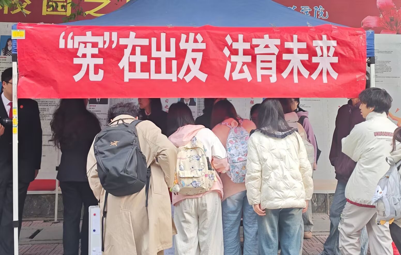 为深入学习宣传宪法、弘扬宪法精神,切实增强师生宪法意识与法治观念,引导青年学子树立尊法学法守法用法的法治信仰,12月3日上午,攀枝花学院法学院联合攀枝花市东区人民法院于柱光楼前开展“宪在出发,法育未来”宪法宣讲摆点活动。