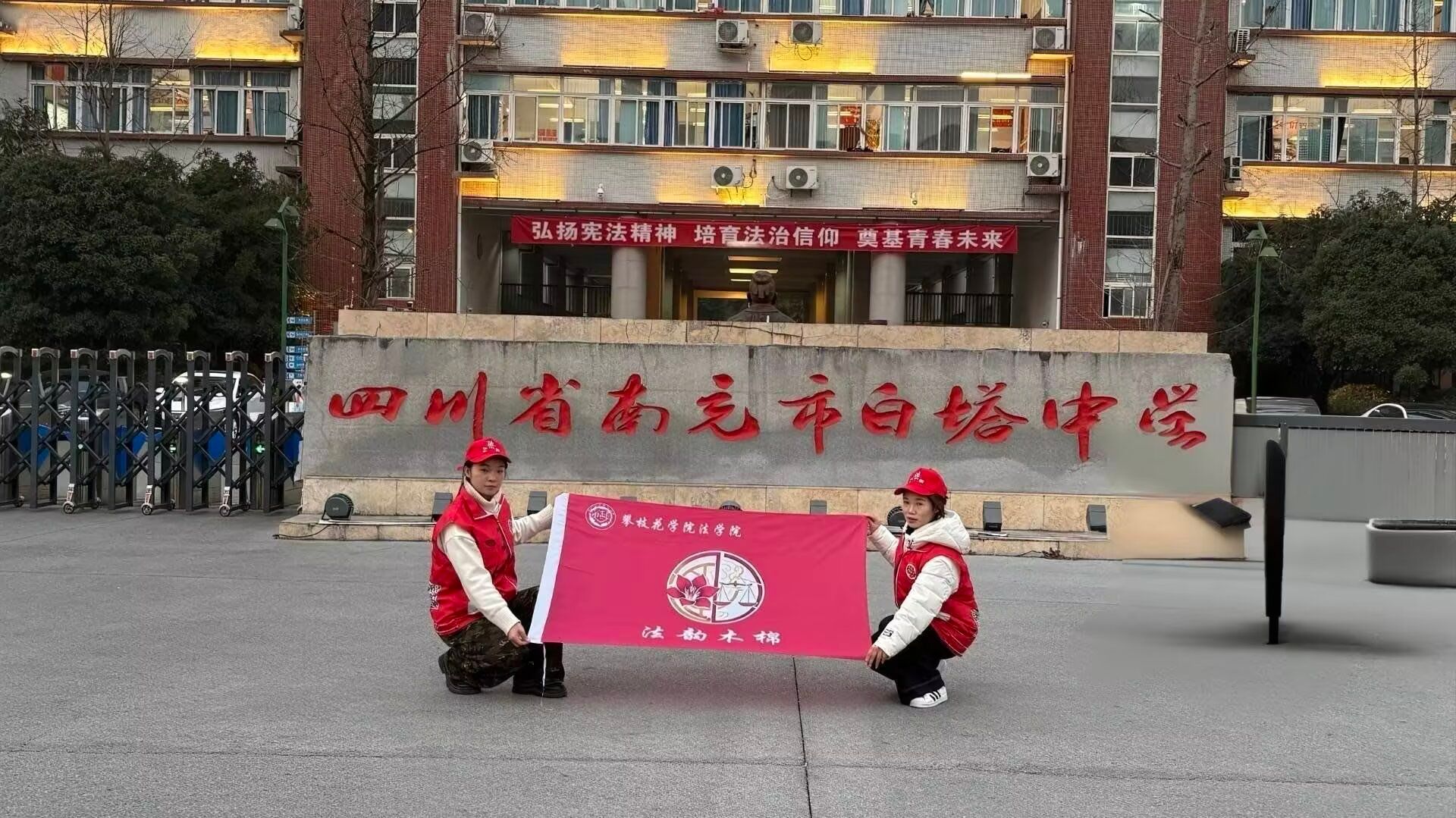 为弘扬法治精神,搭建高校与中学沟通桥梁,1月17日,法学院法苑薪传队前往四川省南充市高坪区白塔中学,开展“法韵木棉·情润故园”寒假普法实践活动。 活动伊始,现场播放学院宣传片,展现学院风貌。唐蓥介绍活动背景与团队情况,并开展校情宣讲,介绍攀枝花学院及法学院的办学特色、专业优势与发展前景,帮助同学们了解大学生活。吴敏则围绕反诈普法,结合典型案例讲解电信诈骗套路、防范要点及法律后果,并积极分享高考复习技巧与心态调节方法,提供学业指导。 互动环节设置法律知识问答与招生政策咨询,团队成员为参与同学发放礼品,现场氛围热烈。最后,全体成员合影留念,活动圆满结束。 此次活动将招生宣传、普法教育、备考指导三者有机融合,既为中学学子提供了清晰的学业规划指引与实用的法律知识,也充分展现了法学院学子回馈社会、服务家乡的责任与担当。