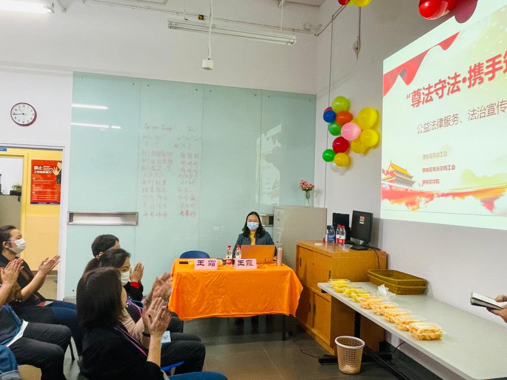 为迎接全国法制宣传日,进一步落实普法宣传工作,提升群众的法律知识,11月30日,攀枝花市总工会、沃尔玛工会联合举办,攀枝花学院法学院承办的以尊法守法,携手筑梦为主题的12.4普法宣讲活动于沃尔玛顺利开展。本次普法宣讲的主讲人为攀枝花学院法学院教师王霞,沃尔玛部分职工参与。 《中华人民共和国民法典》(以下简称《民法典》)婚姻家庭编是《民法典》的重要组成部分,为塑造健康和睦的婚姻家庭关系提供了强大的法律保障。根据群众的不同现实需求,有针对性的进行法治宣 传,真正做到普法不盲目,王霞为沃尔玛职工就《民法典》婚姻家庭编进行解读,通过全面剖析《民法典》婚姻家庭编,解析重点法条、对比法条变化、结合相关案例进行了深入浅出地讲解,让更多市民了解《婚姻法》,运用法律维护自身合法权益,营造温馨的家庭氛围、和谐的社会环境。 本次普法宣讲,旨在引导妇女积极参与社会事务以及运用法律武器维护合法权益,鼓励广大女性树立自尊、自信、自立、自强的独立意识,学会主动提升自己的法律意识和个人修养,引导广大市民进一步树立法治意识和法治观念,培养遇事找法、解决问题靠法的能力,营造和谐稳定的社会环境和良好的法治环境。