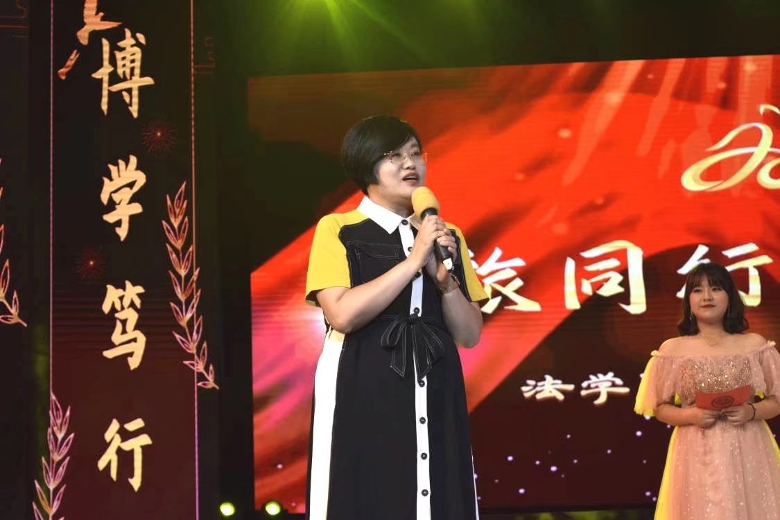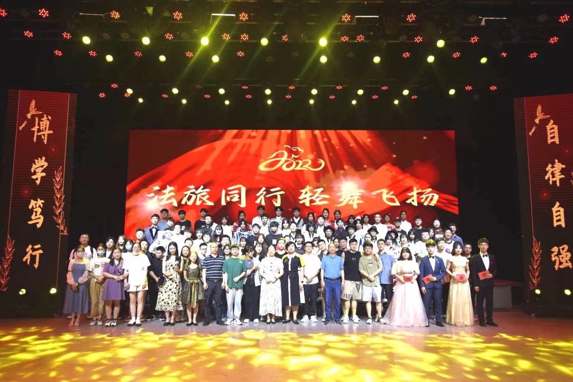为庆贺毕业生的圆满结业,让他们感受到法学院浓浓情意,6月8日晚,法学院于会堂举行“法旅同行,轻舞飞扬”2022届毕业晚会,本次晚会由蔡淑君、罗永婷、王烨、金茗远主持,法学院党总支副书记琳、各专业建设负责人及教研室主任、辅导员等老师及我院部分毕业生观看了本次晚会。