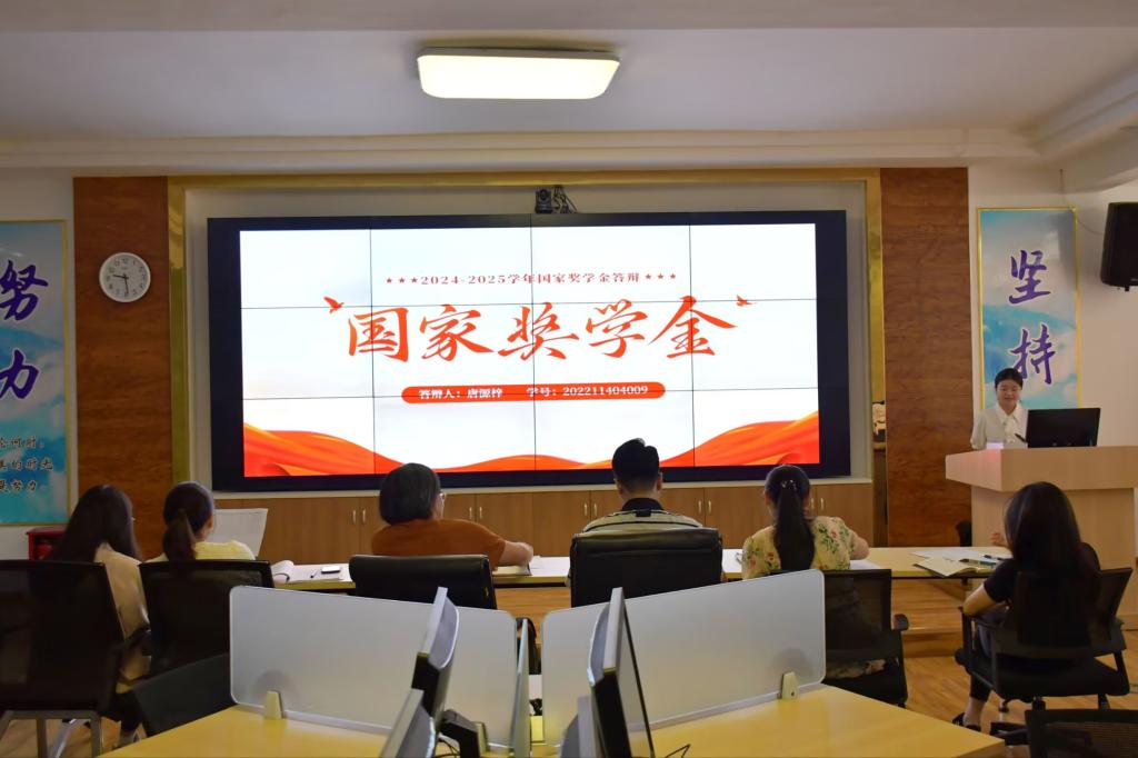 为增强国家奖学金评选结果的公信力,肯定学生个人努力,作好榜样示范,营造良好学风,法学院于10月9日上午8点30分在凌云楼智慧旅游实验室4-1开展国家奖学金公开答辩会。本次答辩的评委由法学院党委书记张琳,法学院学生科科长兼分团委书记刘沙,2022级辅导员吴军华,2023级辅导员王霞,2024级辅导员周敏以及2025级辅导员郭文梅组成。