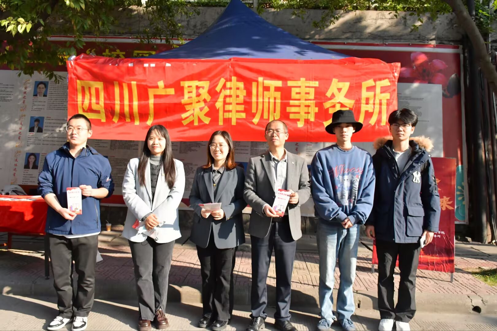 法院律所摆摊送“宪”礼。12月3日上午,东区人民法院联合法学院在柱光楼前举办“‘宪’在出发,法育未来”摆点活动,“emoji猜罪名”“法律知识连连看”“计时读法条”三大闯关区排起长龙;12月4日上午,四川广聚律师事务所与法学院在柱光楼前设点,向学生发放宪法读本、提供法律咨询,并结合就业、消费、网络安全等热点答疑解惑。互动奖品、图文展板与专业解读叠加,让宪法知识“走出课本、走进生活”。