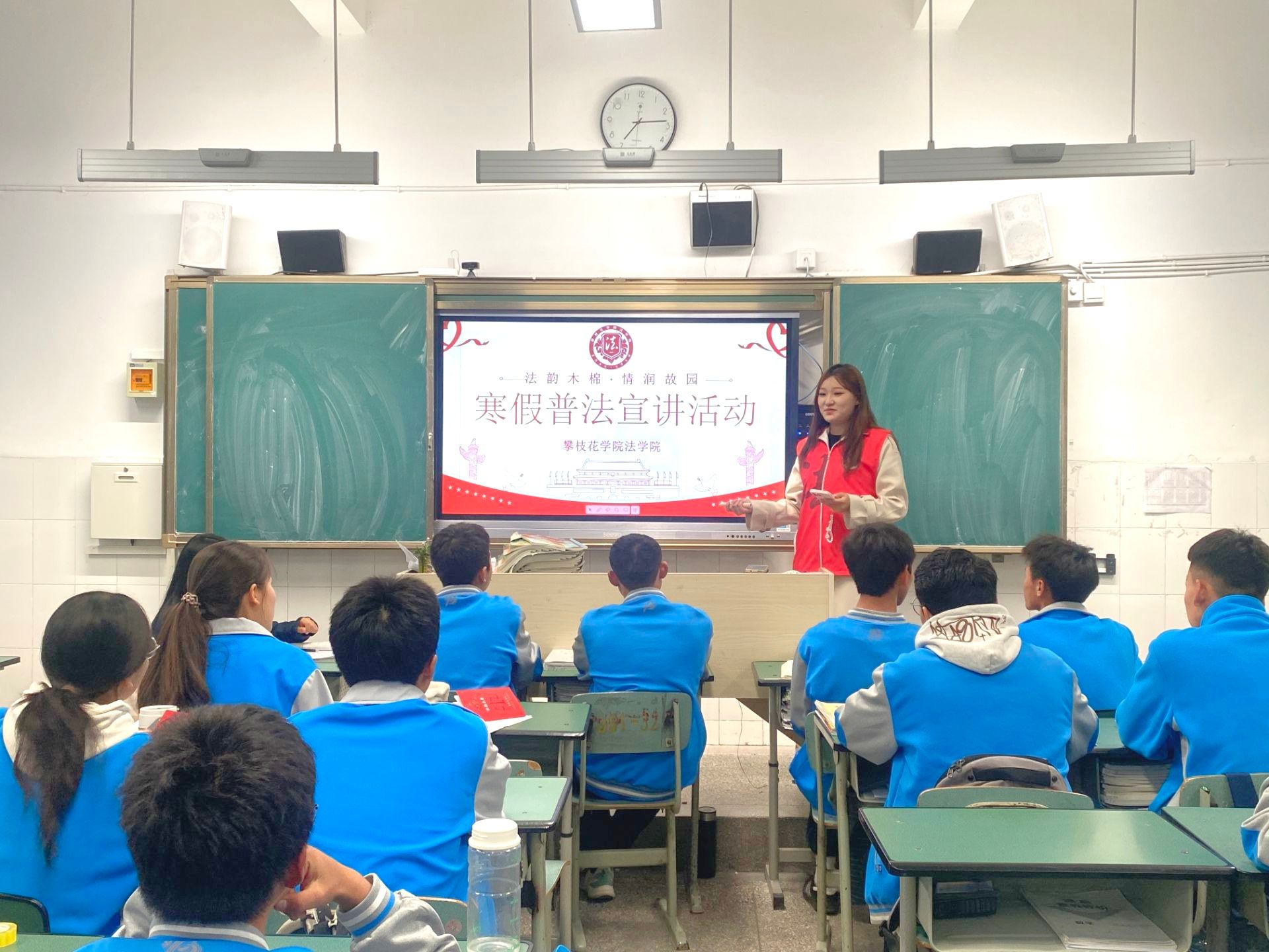 为贯彻落实学校招生宣传工作部署,法学院于2026年寒假期间组织开展“回母校招生宣传”与“普法宣传”深度融合的综合实践活动。学院组建22支实践队伍,走进省内外多所中学,以青春力量搭建起校地沟通、法治传播的坚实桥梁。 活动期间,各支队伍精心筹备、有序开展各项工作。在招生宣传环节,队员们重返高中母校,通过主题宣讲、经验分享、资料发放等多种形式,向高三学子详细介绍攀枝花学院的办学特色、专业优势、人才培养模式与就业发展前景。队员们结合自身学习成长经历,分享在法学院的学习感悟与收获,以鲜活案例与真诚交流,有效激发高三学子对法学专业的学习兴趣与报考热情,为学校吸纳优质生源奠定坚实基础。 在普法宣传环节,队员们围绕青少年常用法律知识开展多样化宣传,通过典型案例讲解、现场法律咨询等形式,将专业法律知识转化为通俗易懂的语言,切实提升高三学子的法治意识与自我维权能力。