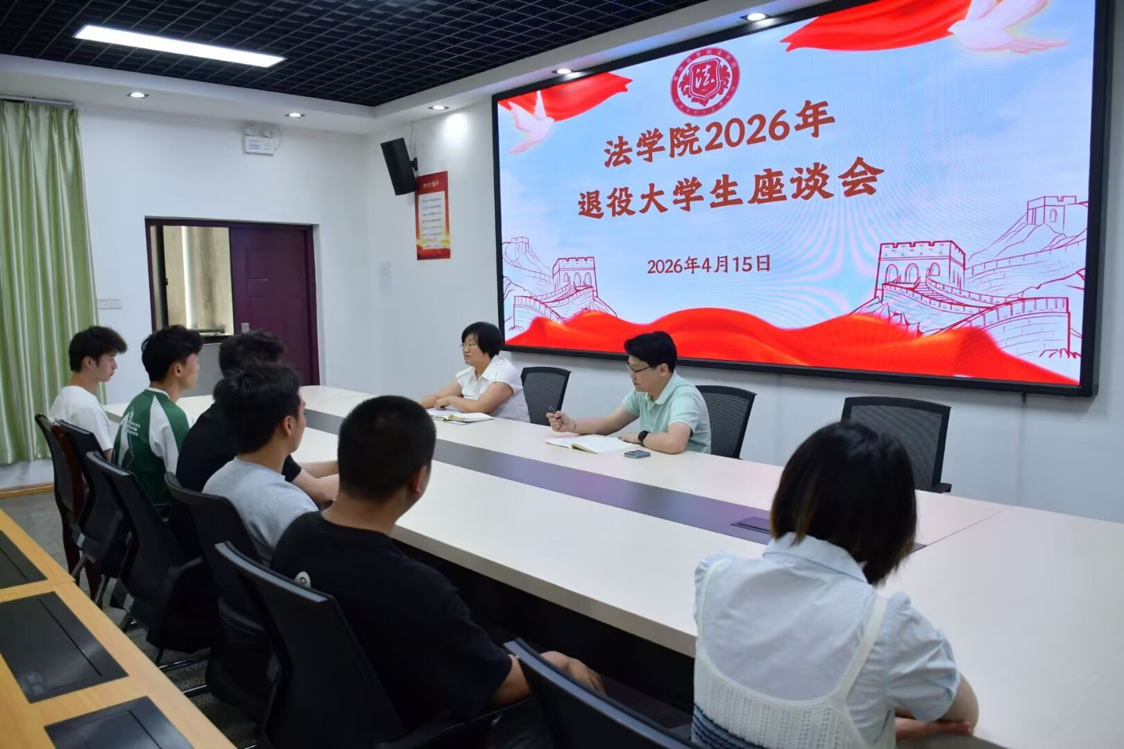 为切实关心退役大学生在校成长,全面了解大家在学习、生活及未来发展中的实际情况,法学院于4月15日下午3点在凌云楼3-1召开2026年退役大学生座谈会。本次座谈会由法学院党委书记张琳主讲、法学院学生科科长兼分团委书记刘沙出席,法学院退役大学生参会 。 会上,张琳对退役复学相关扶持政策进行详细说明,围绕学业帮扶、就业指导等方面作出细致解读,确保政策红利真正惠及每一位同学。退役大学生结合自身军旅生涯,分享了复学后的成长感悟与适应体会。 互动交流中,同学们就课程衔接、法考复习、考研就业等问题踊跃咨询,张琳逐一耐心回应,并结合专业学习给出实用建议,鼓励大家继续保持军人作风,在校园中发挥先锋模范作用。 此次座谈充分体现了学院对退役大学生的重视与关怀,为大家更好地适应校园生活、明晰发展目标提供了有力支持。学院也将持续优化服务举措,为退役大学生成长成才保驾护航。