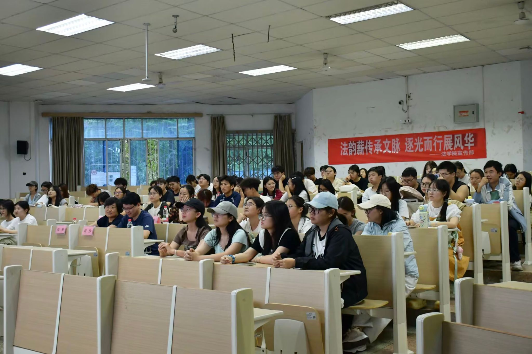 为全面展现法学院办学特色、文化底蕴与学子风采,法学院宣传部于4月14号19:00在1-101顺利举办“法韵薪传·逐光而行”主题作品大赛。本次大赛由法学院党委书记张琳、法学院学生科科长刘沙以及各年级辅导员担任评委,2025级部分学生参加。 本次大赛面向全院学生征集作品,内容丰富、形式新颖,共设PPT展示与微视频拍摄两个赛道。参赛选手依次上台展示,作品紧扣活动主题,紧密结合专业所学,以镜头定格法学院学子青春昂扬的瞬间,以创意与科技赋能法治表达,充分展现了法学学子扎实的专业素养与积极向上的精神风貌。活动最后,张琳书记作总结致辞,寄语同学们积极参与、勇于创新创作,充分展现法学院学子的风采。经现场评审,活动评选出一、二、三等奖,并举行颁奖仪式,获奖者与评委合影留念。 此次大赛的成功举办,以文载法、以艺传情、以智创新,既为同学们搭建了展示自我、交流互鉴的实践平台,也让法治精神在文艺创作中薪火相传、法治理念深入人心,进一步凝聚起法学院青年学子崇法尚法、笃行致远的青春力量。